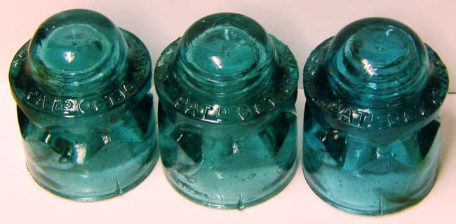 CD 135 CHI. INS. CO. Shoulder embossed variants in my collection, embossing index [030] I have three variants of the embossing. The main way to tell the variants are the line under the "D" in PATd. In this picture I have a short line variant first starting from left to right. The middle one has a slightly longer line under the "D". And the third one on the right has a long line under the "D". 1. Short line under the "D" 2. Medium line under the "D" 3. Long line under the "D" I would like to also report that I have yet to find or see a "DOT" on the skirt of the PATd embossing index [030] if anyone has one with a dot or dots, please contact me. |