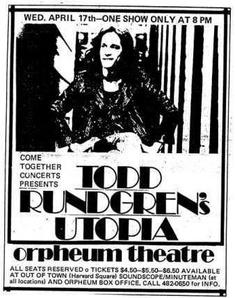 Todd Rundgren's Utopia 4-17-74