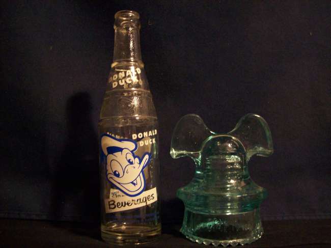A pair from my collections. I bought the bottle at a flea market and found the insulator in the wild about 1980 near an abandoned interurban line. It is the one with the two patent dates only(no HEMINGRAY embossing). Total cost for this pair-$1.00.
