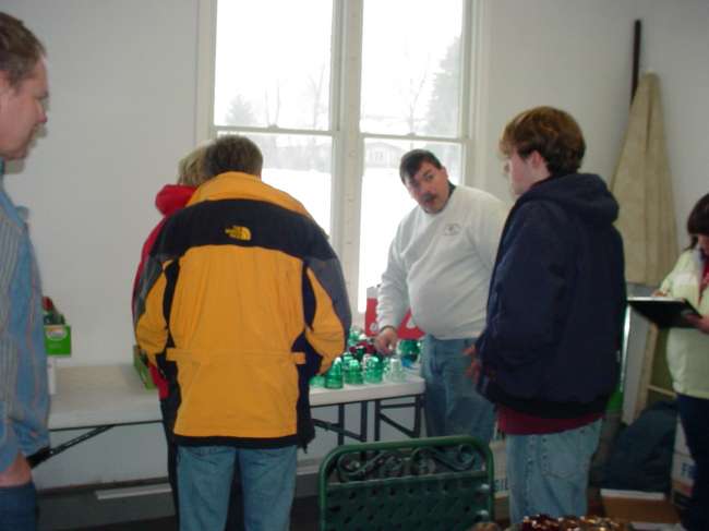 Here's Rick Soller looking towards Tim Haraf who happened to be installed as the Vice President of the GCIC at this swap meet. Kim Borgman looks on from the left as Jay & Josh look at the boxes and Marge Frank records the action.