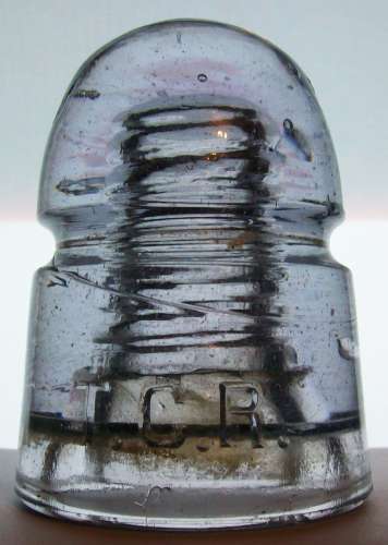This CD 145 TCR is a clear, almost icy steel blue color, with purple swirls throughout, and an abundance of them in the dome. It's a nice one!!