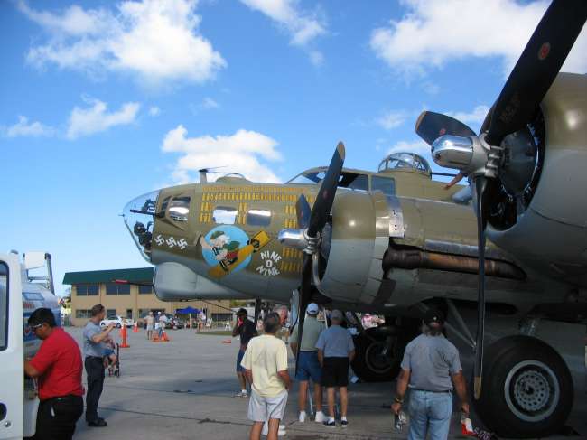 You can see the profile of this great bird. I have always been a WWII buff as well as history buff. This will be the third time I have had the pleasure of seeing this plane up close. You can also climb up in the plane and crawl, and I mean crawl, from the flight deck up front all the way to the tail gunner's position. The last time it had a B-25 Mitchell bomber as a traveling mate, but this time the B-25 was in for service. |