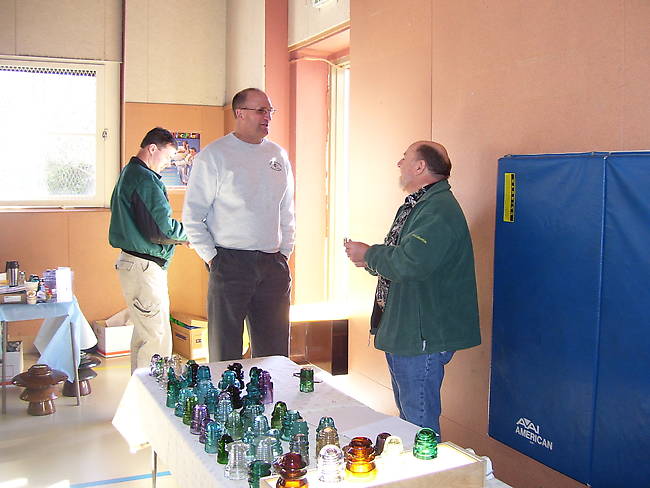 Tim selling an insulator to a very tall guy . I hope he got a good deal.