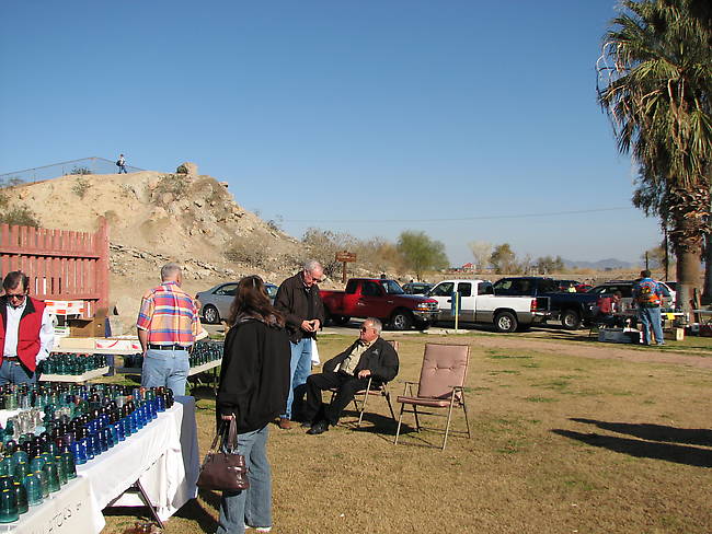 Jack Roach & Galan Howard hooked up in Phoenix and drove to the tailgater together. They met thru shows like this and have since become good friends. Jacks enjoying a comfortable seat with views of the crowd (Galen's standing next to me). Look at the lineup of blues on that table |