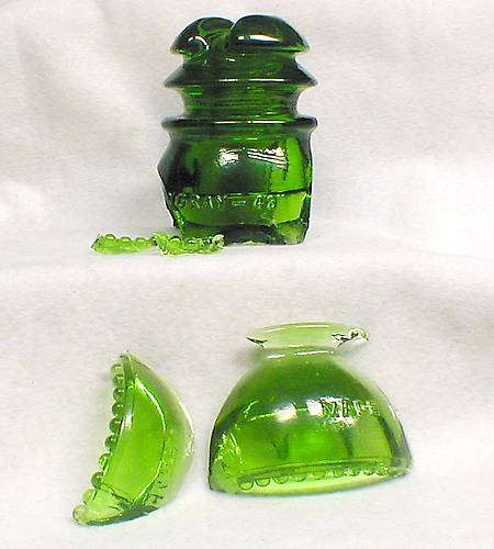 Got this in the mail today off the E place...box was perfect condition, no crushed corners, tire trax, etc....wrapped well in paper, and when I open it, tinkle, tinkle, tinkle is all I hear. Have no idea what happened in transit to break this thick chunk of glass, but it really fell to pieces. Fortunately, I know a guy who makes "railroad diamonds" with broken colour and will pay decently for such colour and I didn't pay a lot. |