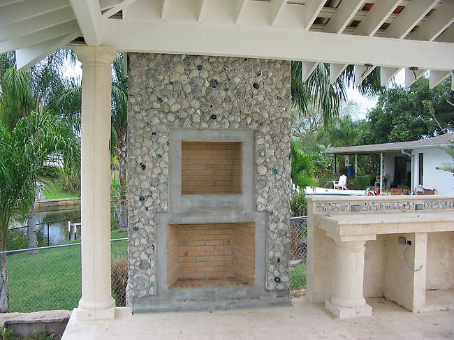 This appears to be just an regular outdoor fireplace and grill, but at a closer look (see following photos) you can see what those little green spots are.