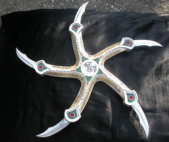 This superb weapon was in a sci fi movie back in the early 1980's called Krull. In the movie it was the main weapon of ancients with the power to be controlled by telepathy. Ever since I saw that movie for the first time when I was 13 I have always wanted one of these super shurikens but unfortunately they are a scarce movie prop. This one was made by someone who created their own mould and extrude moulded it and finally giving it the finishing touches. Now,24 years later I still want one!;-) |