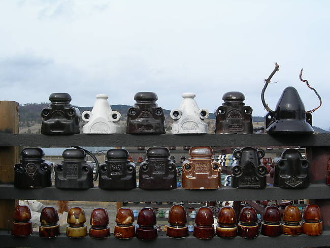 Or to tell folks what you will be looking for at the shows you plan to attend. With any luck, my good buddy Dave Fleishman and I will be going to the following shows this year. Seattle, great show, found some goodies. Still on the " To Do List " are Joan & Brent Burgers Spokanistan - May 23-24, Going back, Once is never enough. Too much fun The Portland National - July 4-6, This will be my first and probably only National. Looking forward to it. Historic Drumheller Alberta July 19, believe me, dinosaurs give " history " a whole new meaning The Insulator Ranch in Merritt B.C., Sept. 6-7, chili & rolls lunch Saturday, breakfast on Sunday. [our treat] Springfield Ohio Show Oct 31-Nov 2 with Glenn Drummond and Steve Blair. A well done, well run show. I am always looking for "Buddha" style fuse switches. As you can see in the picture of my collection, I have 13 units, and 13 is supposed to be an unlucky number. I need more.... I almost got a bright blue cobalt coloured Kearney . I was only $100- short on the final selling price. There are many different shapes, colours, and variations within certain style numbers, so please email me [above], and let me know what you have available. Many thanks. |