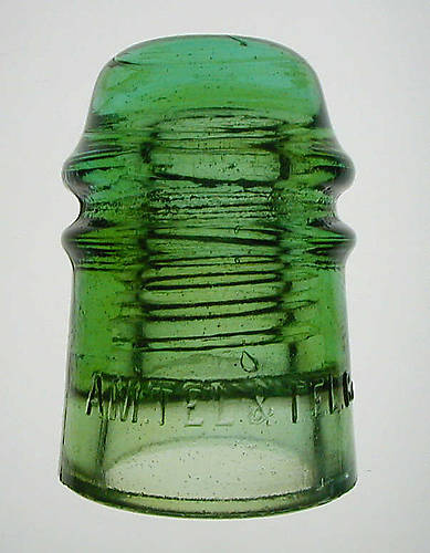 Here is a great two tone Am Tel toll. Amber streaked yellow green from the wire groove down. Waves of amber intermixed with the aqua in the dome. Great when backlit.