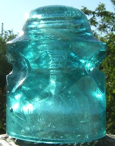 This diamond groove CHI. INS. CO. shoulder embossed insulator is one of my favorites in my specialty collection. I have two of these milky ones and several with milk swirling in other embossing index's.