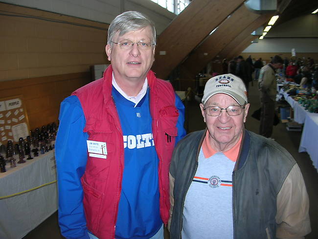 Jim White of Indianapolis and Jack Bateman of Rock Island, Il renew acquaintances and stories from the early 1960s...has it been that long? Seems like yesterday. Great to see you again Jack! Proof that once that glass and collecting bug attack it stays with you for a lifetime. |