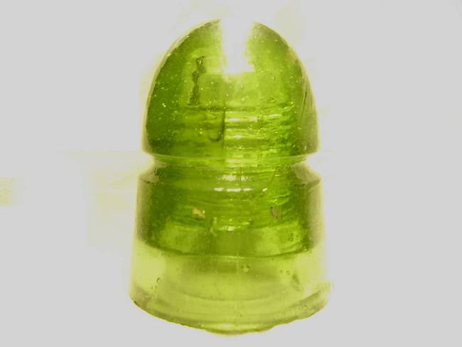 A yellow green American Insulator Co. CD 145...bought at the Wheaton show...there was a close cobalt blue Westinghouse # 3 there too...I believe ...