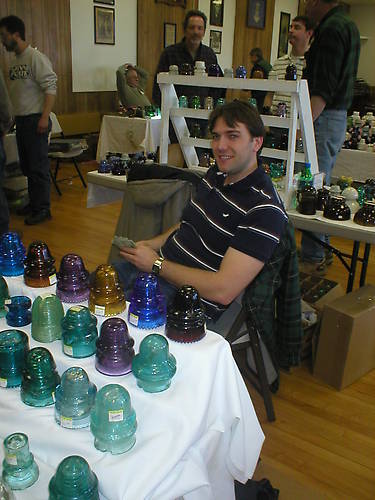 Daryl Richardson at his table counting the cash he made after making some great sales of superb insulators he had available.