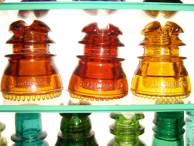 Three really nice Insulators Golden Amber Orange Amber Leaner "Thanks David Wiecek" and Yellow Amber all in mint shape. Still looking for a mint Yellow