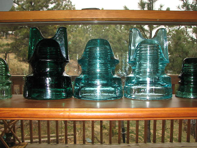 It took a bit of glass to make these hefty pieces!!! The aqua's are Oakman Base Embossed. The Green is the skirt embossed JUMBO. I'm guessing the adolescent in the middle has yet to earn its ears, huh?