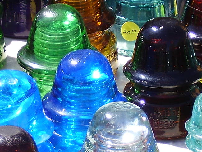 I couldn't pass up this photo op of an increasingly rare sight—the sun glinting off a CD 162 peacock insulator. The insulators around it are brilliant, too.