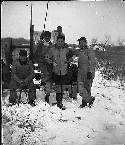 These hard working guys are here taking a moment for this photograph while stringing cable on a cold winter day.