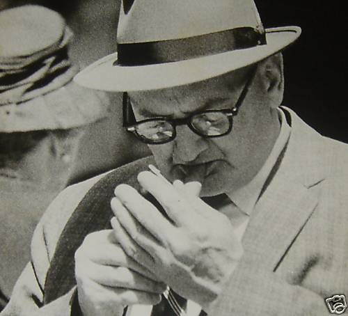 I'm not sure if this gent was lighting a puff because things on the "big board" of the day were going for the bitter or sweet. At any rate here is a great vintage and candid view of someone close up within the financial district in Manhattan on the sidewalk lighting up a smoke. Probably times have not changed since! |