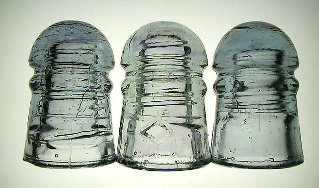 Here are three different CD 102's from Canada. Each has great purple swirling. The two on the end have a base color of steel blue. The middle is almost an ice green base color.
