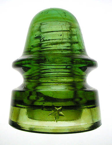 Here is a around dome variant of the CD 162 Star. Notice the taller dome and more pronounced wire groove. A great yellow green color with amber streaking in the glass.