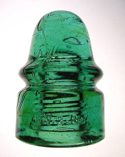 Unusual shape to this 133. Peaked dome and real thick skirt. But check the color out. The underlying color is a nice blue aqua. Amber wisps in the dome and more prominent amber streaking in the skirt. I like how the threads go almost to the base. Some neat surface straw lines as well. |