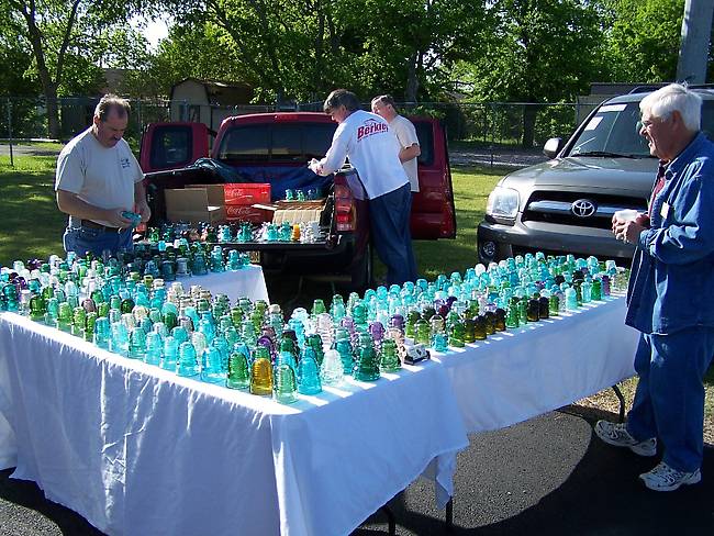 Bob Berry looks over Ken Roberts impressive selection of glass.