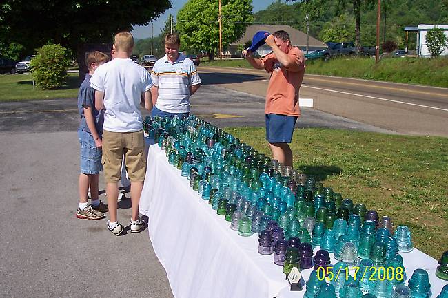 Ken Roberts showing off his sales table to some folks.