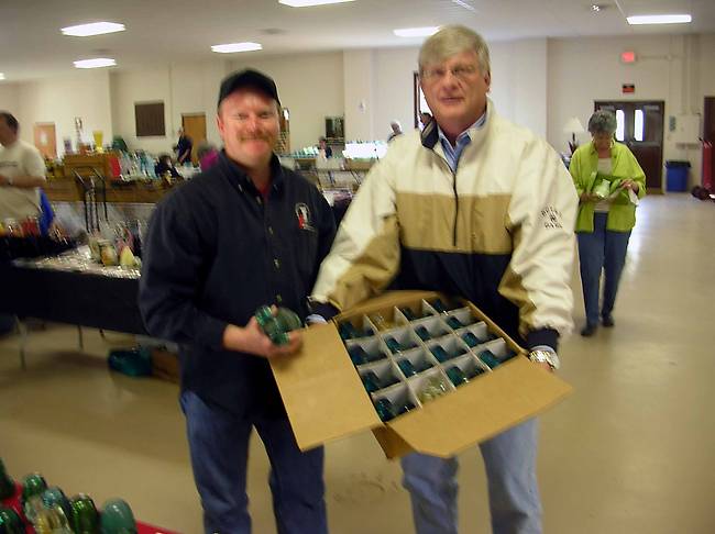A bit blurry (sorry) ....this was before coffee...Jim White sells Dan Ling 16 mice.....had to hurry the photo, those things are heavy. Dan is on the left.