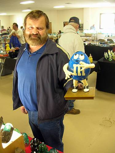 A Canadian regular and friend, Greg Dodok came to scout out some good Canadian glass and while at Jim White's table visited with the "M" for a few minutes.