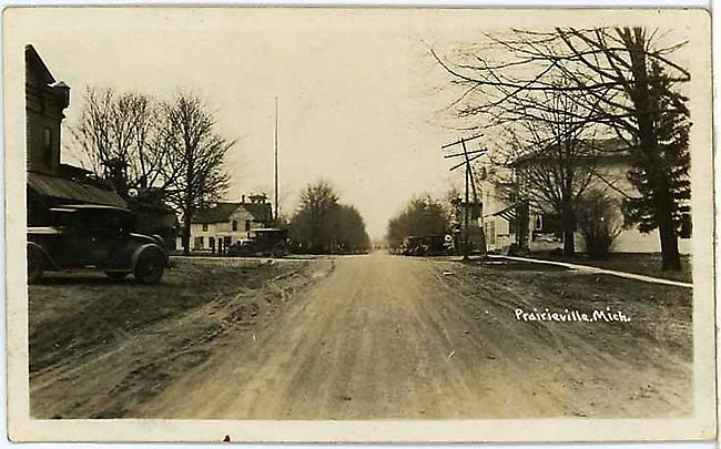 Photo taken along this little community's Main Street. Maybe the disconfigured telephone open-wire pole that you see on the right was the result of a good-sized blast of wind that travelled through this town?