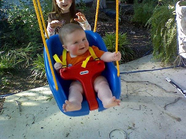 This is our son John Thomas being pushed in the swing by his big sister Cecelia. He is 8 months old and she just turned 5.