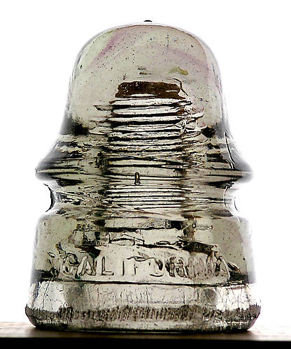 The color separation in 2-tone California CD 162's is usually not very good so I was quite pleased when I found this one in a recent collection purchase-- my only keeper. This piece screams California. This signal is mostly a clear to gray color with a couple of vivid purple streaks in the dome and factory base grinding circling the bottom. |