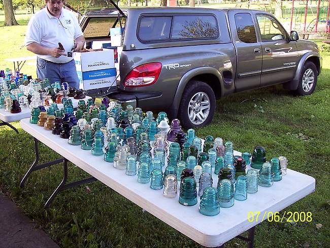 Rick Soller of Gurnee, IL putting some items out on several tables he had set up