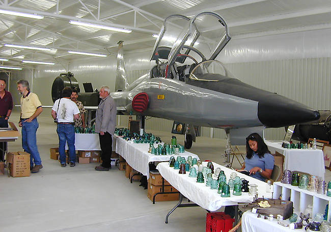 Dwayne Anthony's sales table in the rear of the show hall. If he needs to make a fast retreat, he can just jump into this fighter plane! Or perhaps shield himself from "pot shots" and hop into the tank (shown in the [id=217603071; previous picture]). |