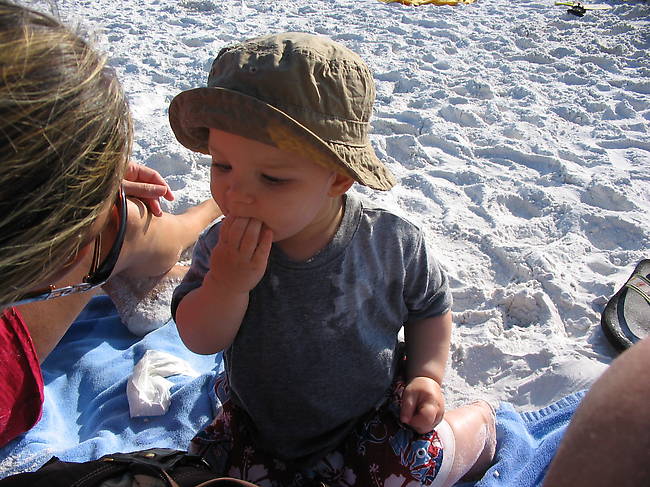 My grandson came to visit me in May and we took him to the beach. He had a great time for a first-time beach visiter. He loved the waves and the weather was wonderful, 80's. The water was about 85. Perfect.