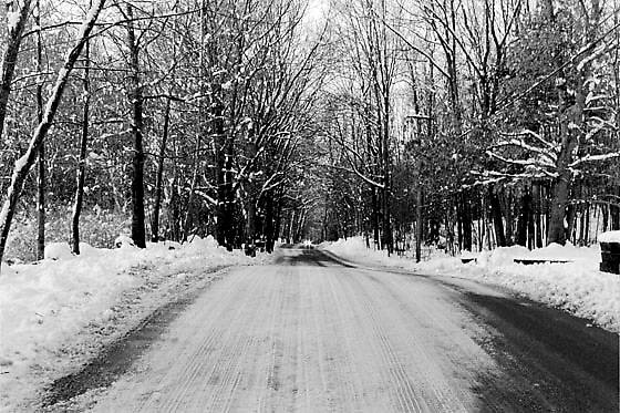 Probably a five-mile drive but if the snowplows haven't thoroughly done their job for you to get from home-base to the office door it can take as long as a half-hour Boston commute on a good day. I'd rather have the picturesque Maine trek any day! Photo taken near Kingfield, ME from my late mother's "camp" along the mostly unpaved road to over the "wire bridge" eventually into town...if any of you know where that is up in northwestern Maine. |