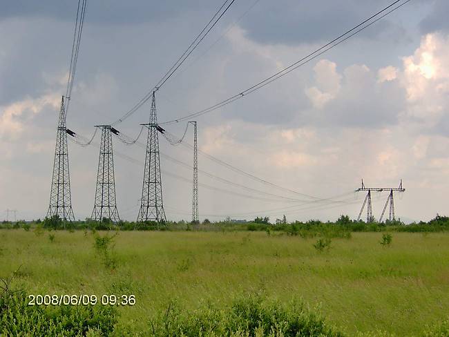 The trio strain pole in in Hungary, the portal strain pole in in Ukraine, the state border is between them. Sajoszoged-Munkachevo 400 kV line