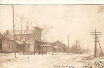 Palmyra, OH 1912 Snowy Street Scene Open Wire Lines
