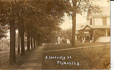 Photographed along a straight, neat sidewalk view of a neighborhood in this quiet Ohio town exactly a hundred years ago. Very likely nothing man-made was heard close-by nor in the distance. What you heard was simply nature. And what you smelled was the same....perhaps from the aroma from one or more of the coal or wood stoves in the kitchens within close proximity ;-) |
