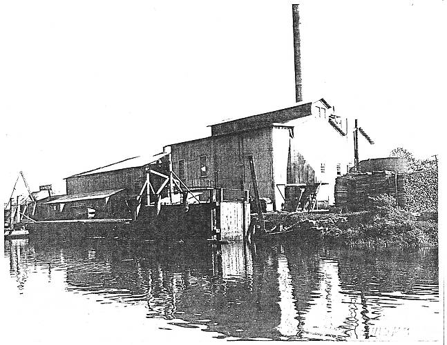 The Tillamook steam electric generating plant built by the Coast Power Co. The plant was capable of burning wood or oil but burned "slabwood" which was waste wood from the many lumber mills nearby. This photo was taken by Mountain States Power Co., CPC's successor after 1927. The plant was gone by the mid 1960's as better power interconnects were installed. |