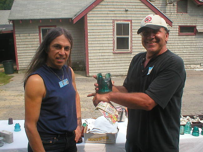 That's Dan May from Whitman, MA (right) describing the merits and find of a CD 267.5 NEGM insulator (which looks like it has a pot belly to its design which is not common) to Joe Maurath on the left.