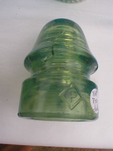 This insulator has a rather strong yellow-green presence with medium-intensity opalescence throughout the glass. This piece I believe was offered for sale.