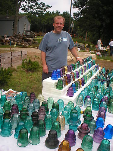 Approximately 25 insulator collectors attended the Yankee Pole Cat Insulator Club's (YPCIC) fourth annual club meet and barbeque in Milford, MA on Saturday July 12, 2008. About a dozen sales tables were set up with a very wide variety of glass and porcelain insulators in most price ranges. In addition there were a number of go-withs and other collectibles spread out under the sunny skies above. The event was hosted by YPCIC president, John Rajpolt (shown above). Not only did John do a top-notch job in making this fantastic event possible, he received much acclaim and recognition from those who enjoyed his superb barbeque cooking talents! By the show's close at 2PM, many in attendance commented about the fantastic food, great insulators and the opportunity to meet new and old collector friends. Among the event's highlights was a sort-of-impromptu display of some very rarely seen (and one-of-a-kind) insulators assembled on John Rajpolt's table. Following are 36 photos that will give you a virtual tour of our show. Please be sure to attend other YPCIC events because there is growing enthusiasm among insulator collectors here in the Northeast! Best Wishes to All, Joe Maurath, Jr. ################################## |