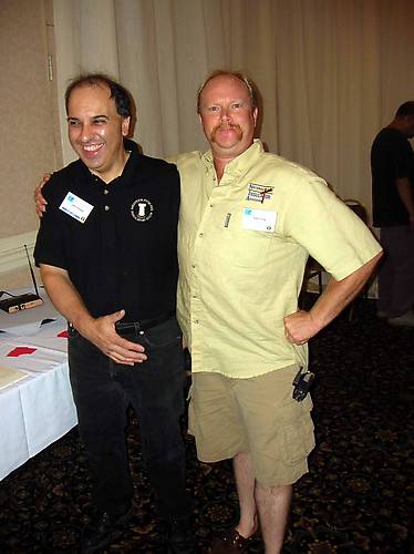 Dan Ling (right) is the first raffle winner. Dan hams it up with John Hovanec (left).