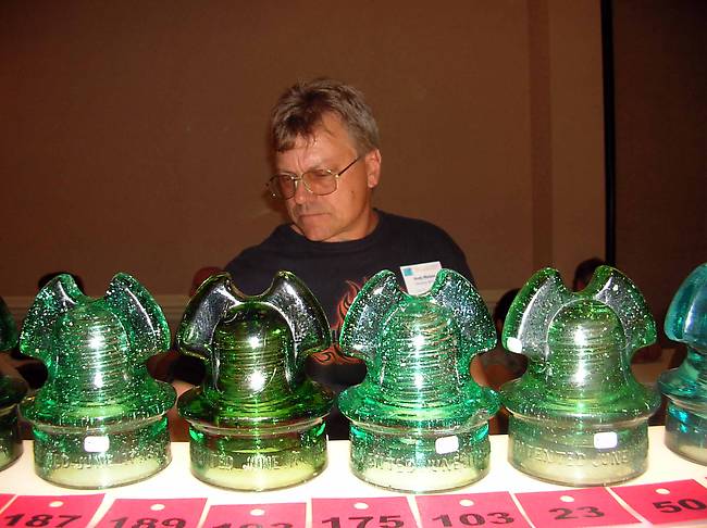 Andy Wadysz looking over Jim White's assortment of Stars, Kim Borgman's Hemingray #9s.