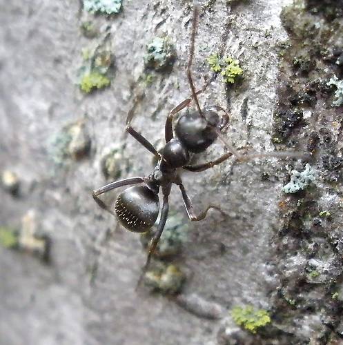 I took this photo of this black tree ant on the apple tree in the yard. You can even see the tiny guard hairs on the thorax.