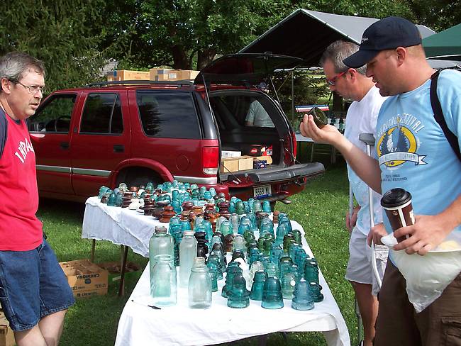 Even being on crutches didn't deter one visitor's intense browsing while his friend is trying to decide what color to call that signal.