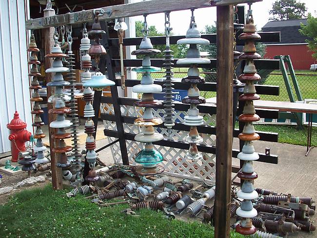 Part of Al Stastny's extensive outdoor displays. He has insulator related items around the entire perimeter of his yard for landscaping and decoration.