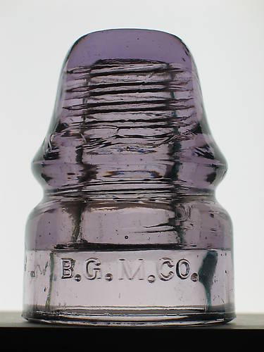 CD 133 [010] B.G.M. CO. in a nice shade of purple. I would be interested in hearing from others who share an interest in Baltimore Glass Manufacturing Company - B.G.M. CO. insulators. I am always looking for variations I don't have and those with milky or olive swirls to add to my collection. |