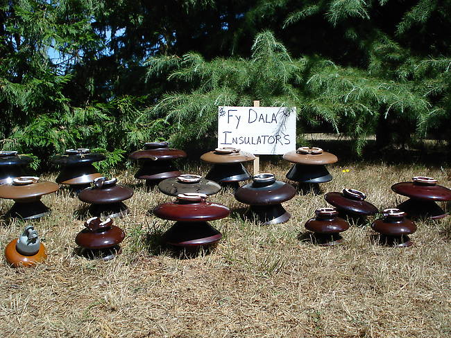 When first I saw this sign, I thought Tim had joined the Fy Dala cult. But no, he was selling these insulators for five dollars each!